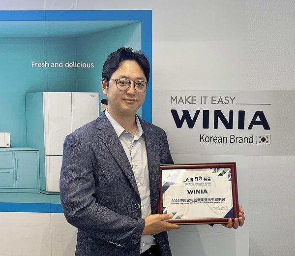 ![]() - 위니아전자 설한길 중국판매법인장이 `중국 가전 혁신 판매 우수 사례 표창`을 받고 포즈를 취하고 있다.