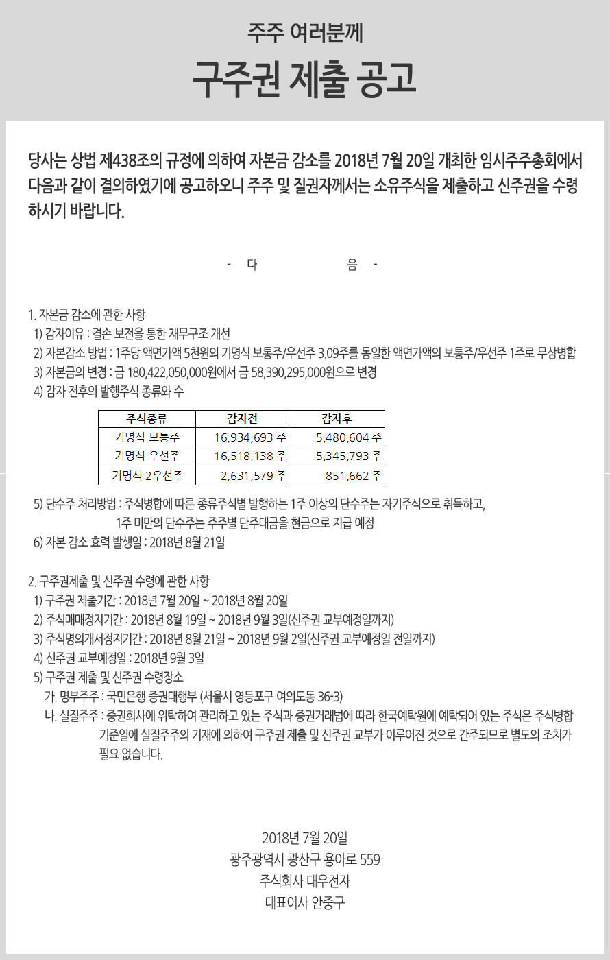 | 216 | 기업 구주권 제출 공고 | 2018-07-20 |