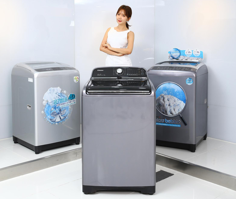 이번에 출시한 신제품은 18kg 대용량 제품으로 ▲ 초미세 공기방울을 이용한 마이크로 버블 세탁 ▲ 후면 컨트롤 디자인 ▲ 스테인레스 세탁조 및 세탁판을 적용한 점이 특징이다.