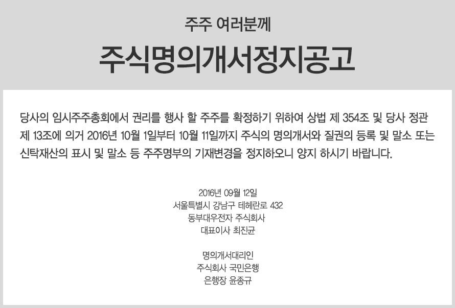 | 123 | 기업 주식명의개서정지공고 | 2016-09-12 |